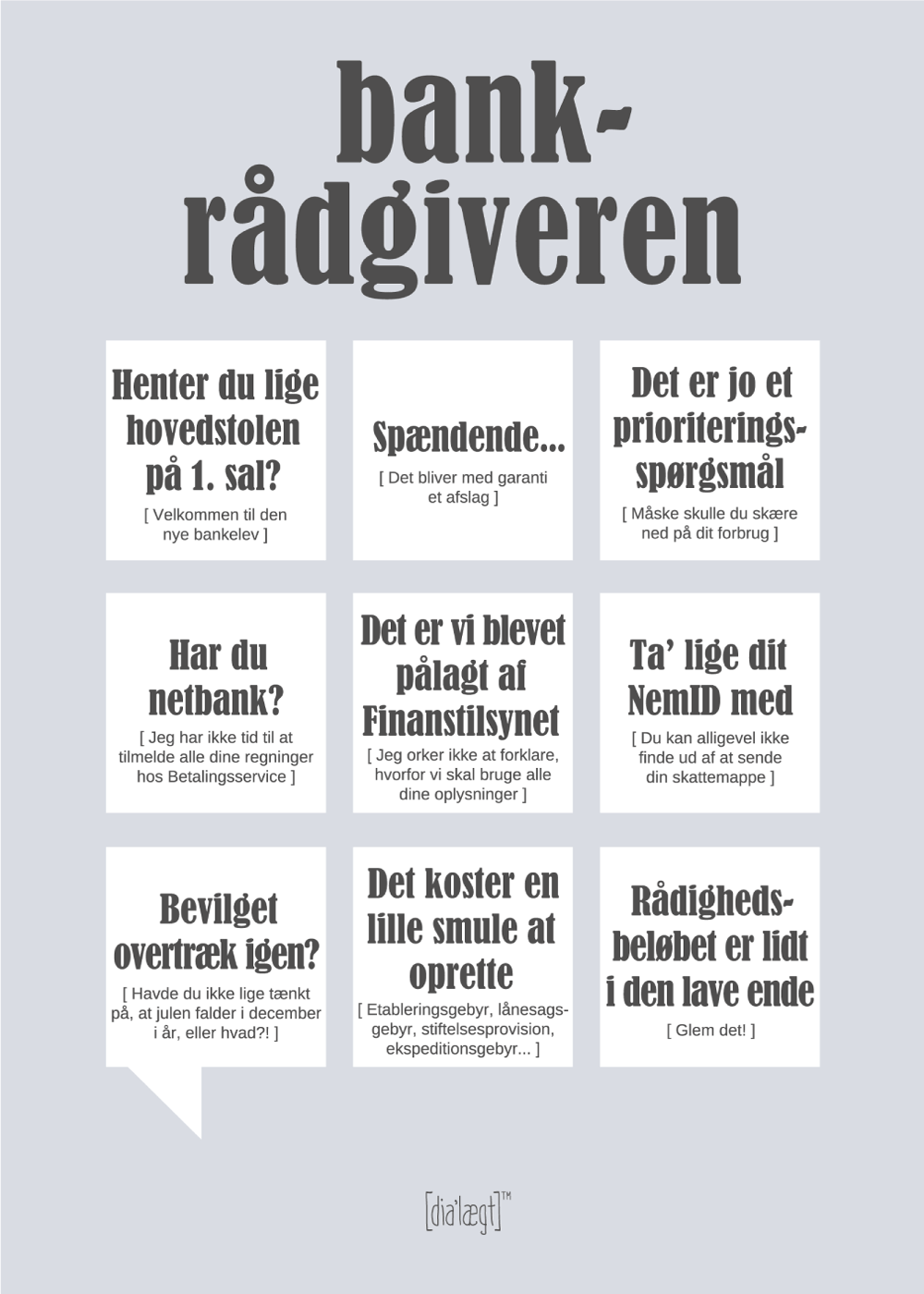 Plakaten er tiltænkt den selvironiske bankrådgiver, der kan genke