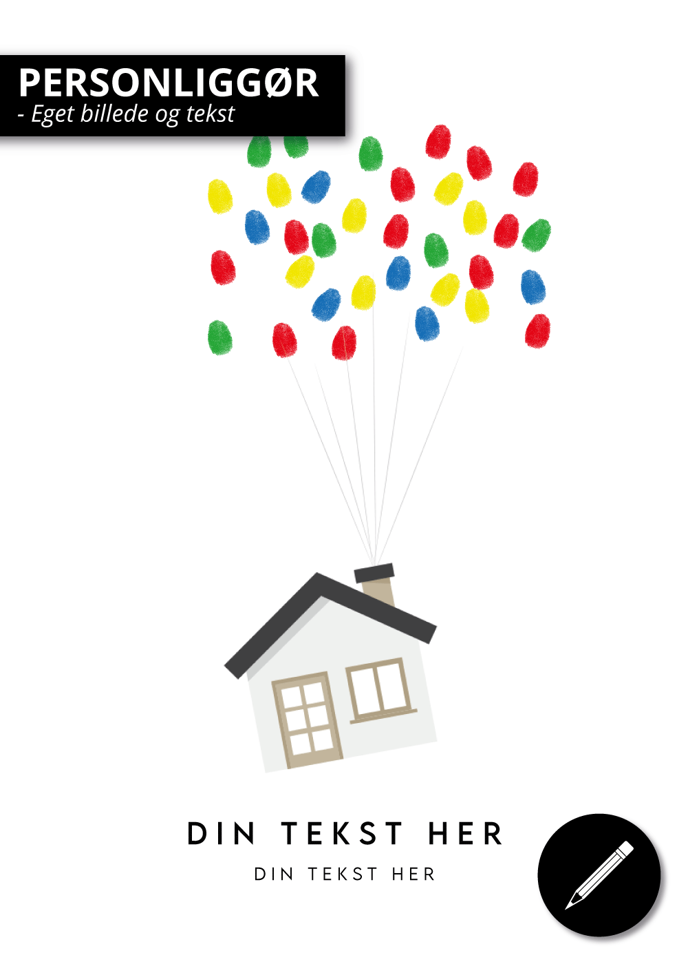 Hus i balloner - House Warming plakat - Fingeraftryk plakat