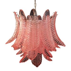 Murano Chandelier – 36 glass leaves – Pink Chrome shiny