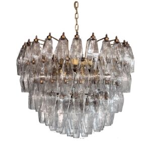 Murano Chandelier – Poliedri – 111 glass – Transparent Matt gold without patina