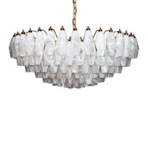 Murano Chandelier – Poliedri – 185 glass – White Alabaster Matt gold without patina