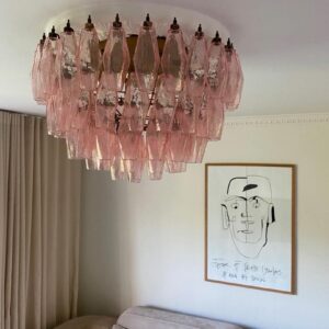 Murano Chandelier – Poliedri – 84 glasses – Pink Matt gold without patina