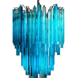 Murano Chandelier – Triedri – 92 prisms – Blue/Transparent Chrome shiny