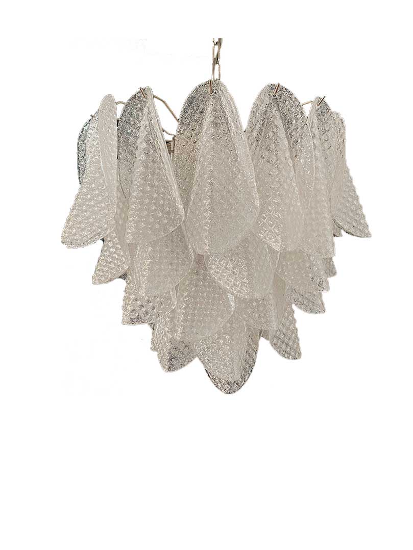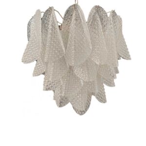 Forkæl dit hjem med den smukkeste italienske Murano-lysekrone, der udstråler uovertruffen skønhed og elegance. Denne fortryllende lysekrone består af 41 glasblade, der er smukt indrammet i en forkromet ramme.Glasbladene er lavet af transparent krystal med