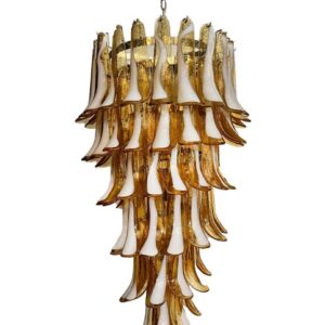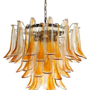 Murano ljuskrona – 85 kronblad – Karamell Krom blank