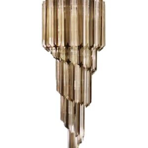 Murano ljuskrona -Spiral – 86 prismer – Rökig Krom blank