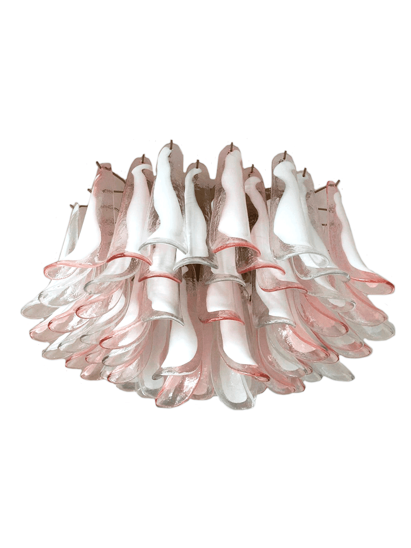 Murano Loftslampe – 64 Kronblade – Rosa/Klar Krom patineret