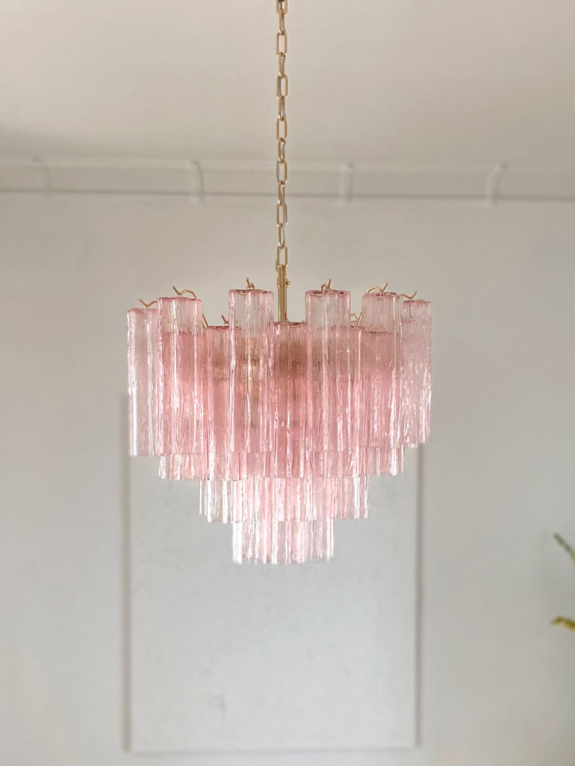 Murano lysekrone – 36 tuber – Rosa på blank guldstel