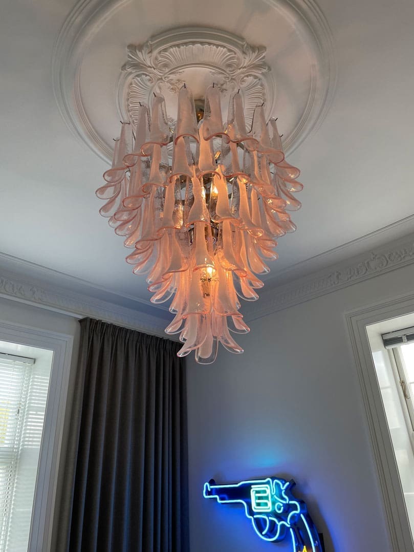 Murano Lysekrone - 75 Kronblade - Rosa Krom patineret
