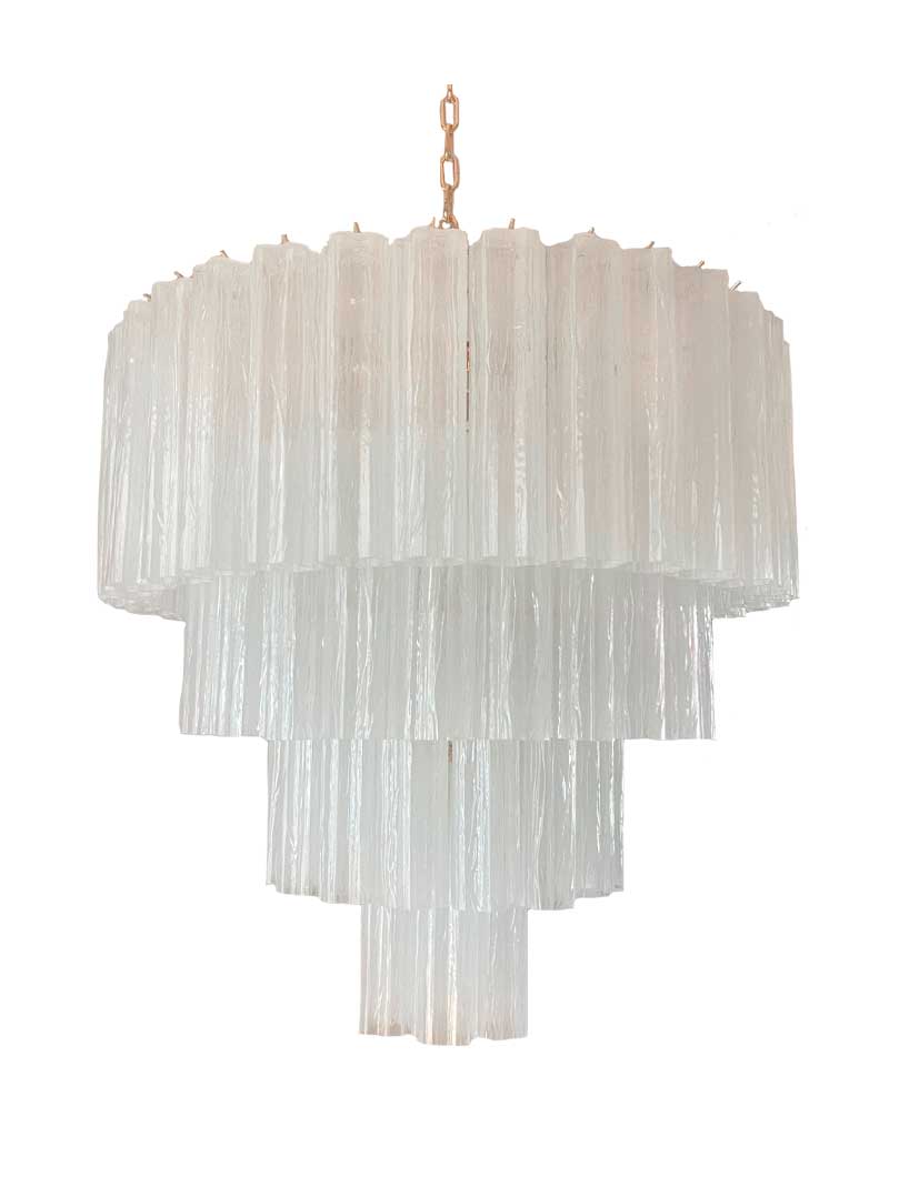 Murano Lysekrone – 78 tuber – Opalhvid – Blank guldstel