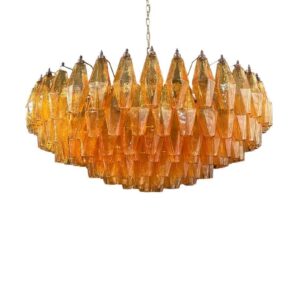 Få en storslået oplevelse med vores moderne Murano-lysekrone, der hylder den traditionelle italienske stil fra midten af århundredet med et strejf af det 21. århundredes elegance. Denne imponerende lysekrone er sammensat af 185 transparente poliedri glas,