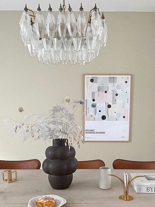 Forkæl dit hjem med en strålende elegance med vores italienske lysekrone, der er en sand perle af skønhed og håndværk. Denne luksuriøse lysekrone er fremstillet af 56 fortryllende klare Poliedri glas, der fanger lyset på en forbløffende måde.Med sin struk