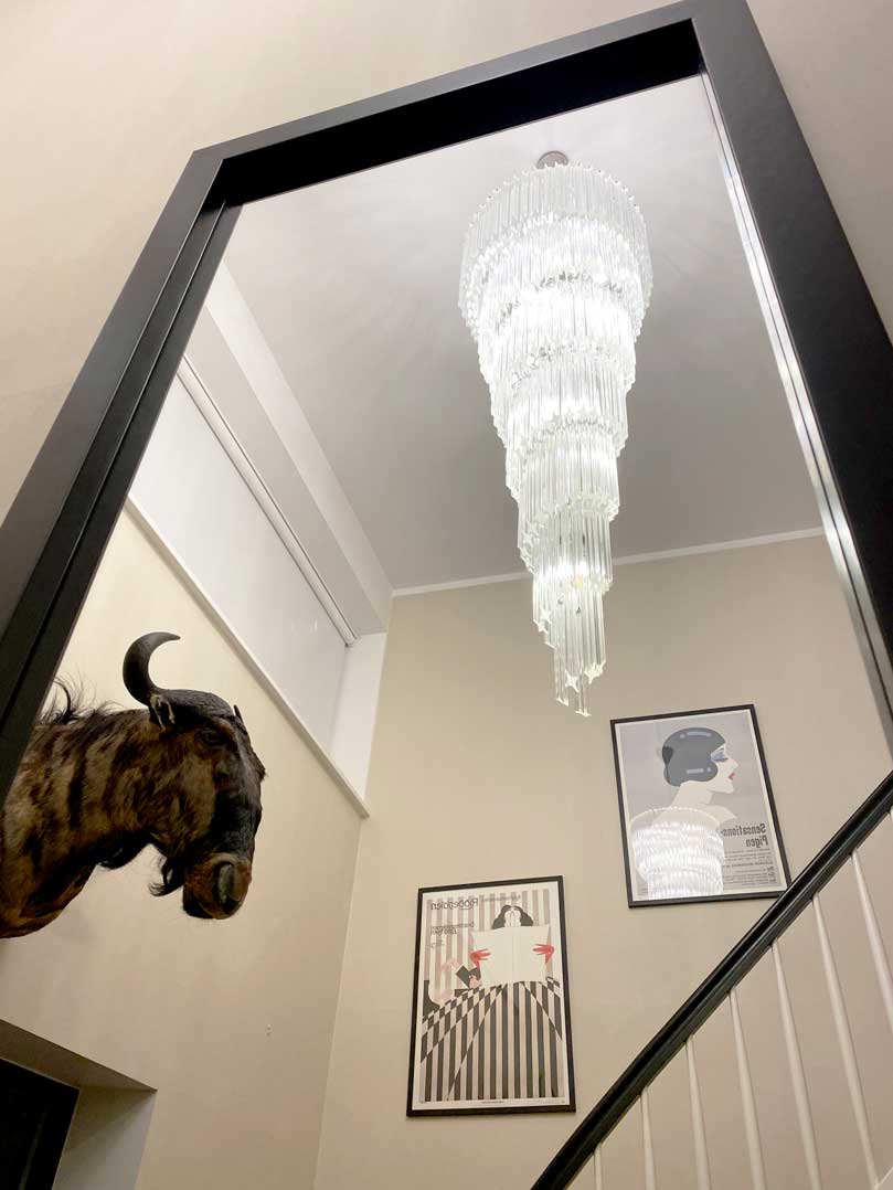 Fang blikket med vores betagende Murano lysekrone, der kombinerer elegance og drama på en enestående måde. Denne fantastiske lysekrone er sammensat af 215 smukke Murano krystalprismer og har en spektakulær spiralform, der strækker sig nedad med imponerend