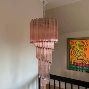 Murano lysekrone – Spiral – 54 prismer – Røgfarvet Krom patineret