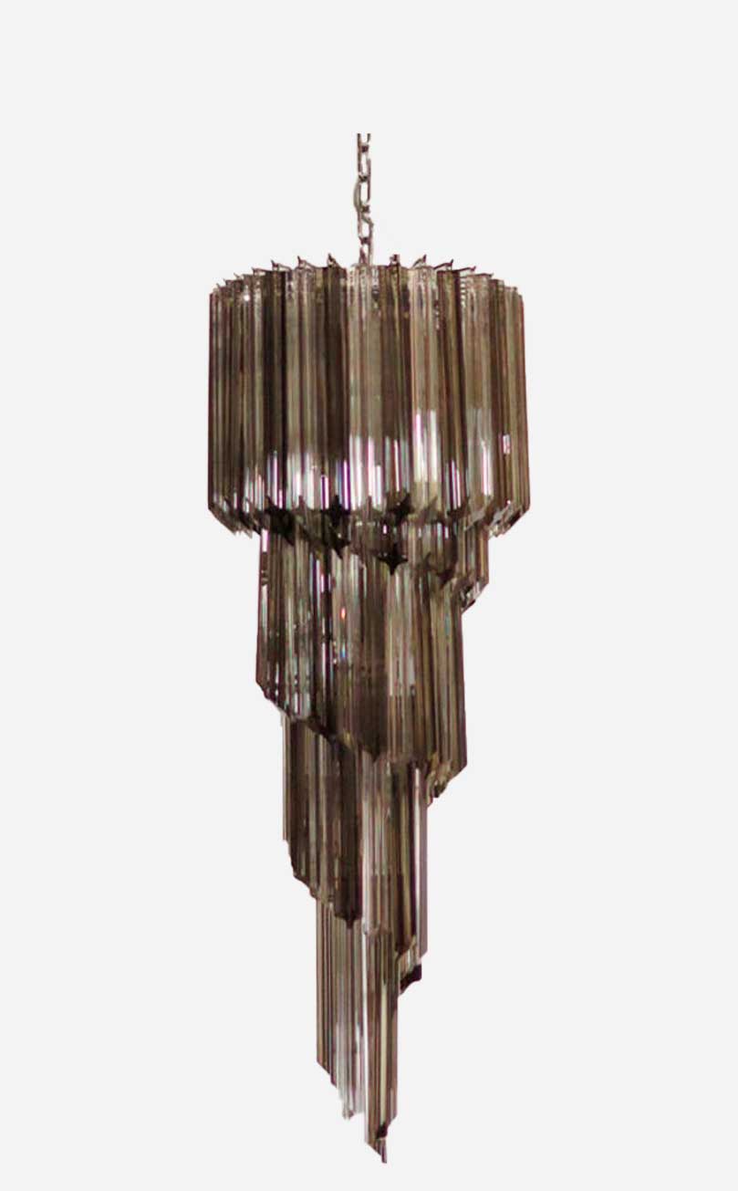Murano Lysekrone -Spiral – 86 prismer – Røgfarvet