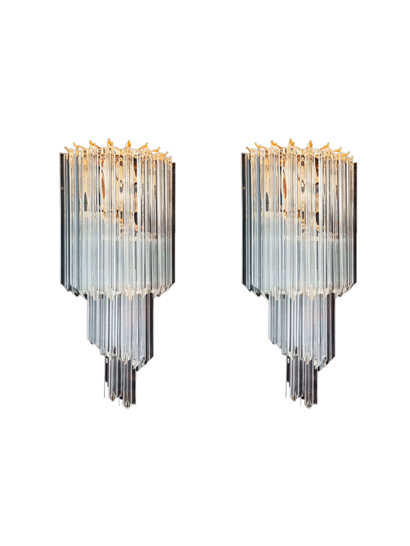 Skab en stemningsfuld atmosfære i dit hjem med vores fantastiske Murano væglampe, der udstråler italiensk glaskunst i høj klasse. Hver applikation er omhyggeligt håndlavet med 16 smukke Quadriedri Murano-krystalprismer.Den unikke spiralform og det sofisti