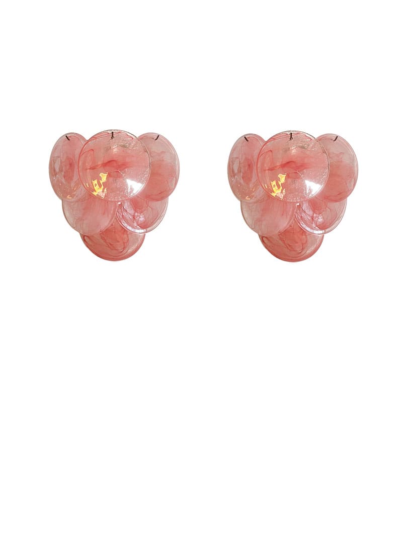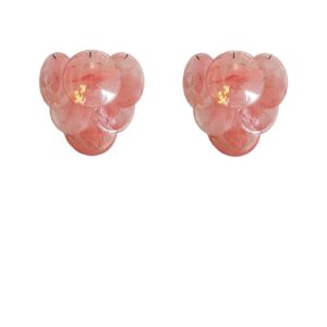 Pair of Italian Murano wall lights in the elegant Vistosi style. Each sconce features six handcrafted pink alabaster Murano glass elements, carefully shaped by skilled artisans using traditional techniques.These exquisite pieces bring a touch of timeles