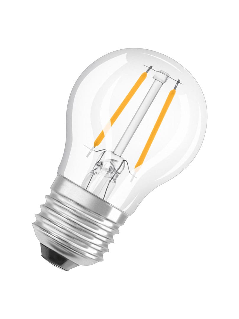 Energiklasse: FDæmpbar: JaDiameter 45mm.Fatning: E27Højde: 77 mm.Kelin: 2700 kelvinLumen: 470 lumenLyskilde: LED pæreRa værdi: 80Spredningsvinkel 320 graderSvare til 40 WattWatt 4,8 WattMateriale: GlasGlastype: Klart glasBrand: Osram parathom