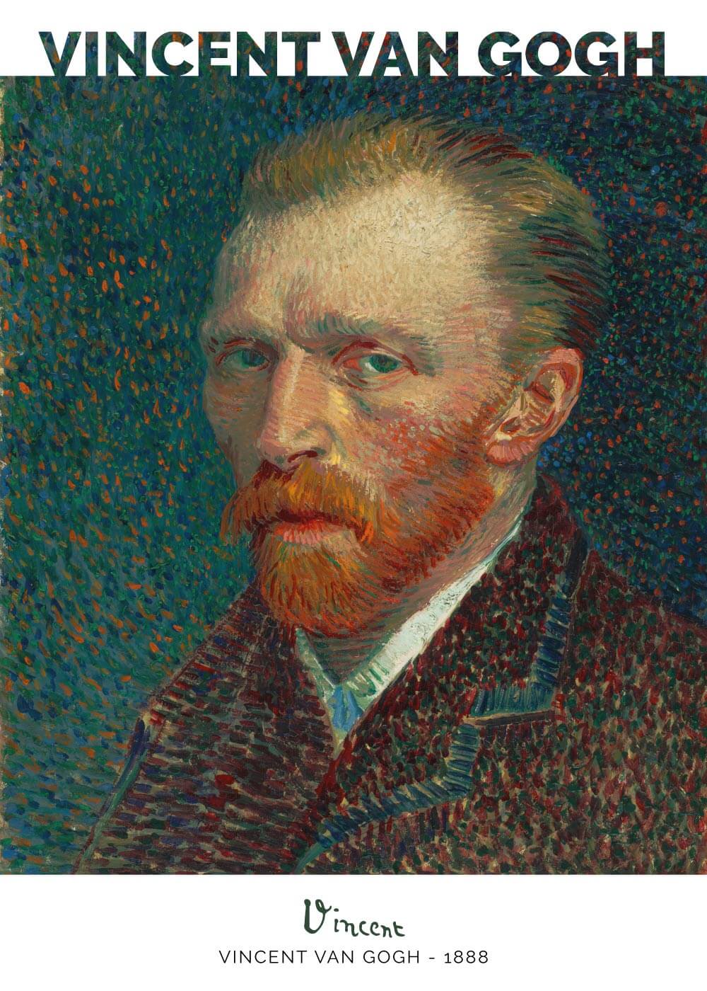 Flot kunstplakat med selvportræt af den enestående hollandske kunstmaler Vincent Van Gogh. Maleriet er ét i serien af over 35 selvportrætter, som Van Gogh malede gennem sit liv. Hans formål med at male portræt