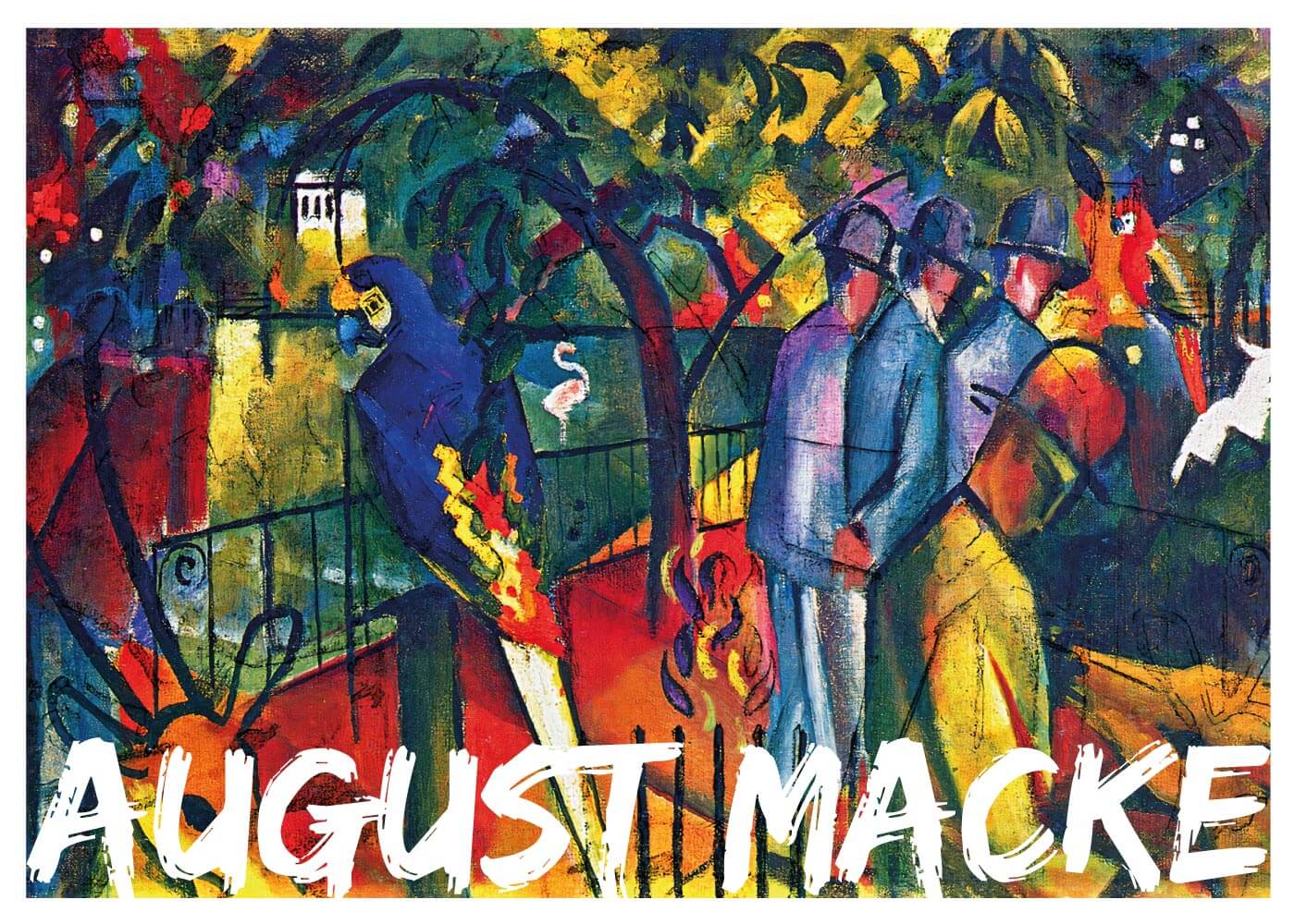Museumsplakat af den store tyske ekspressionistiske maler August Macke. På plakaten ses August Mackes “Zoologischer Garten”, som han malede i 1912. Selve maleriet er udført i akvarel og viser et en zoologisk